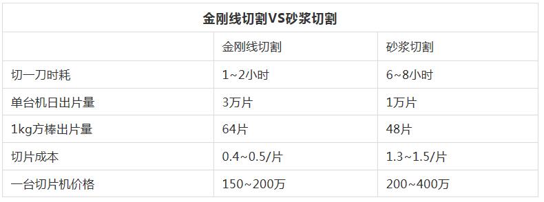 在砂漿切割時(shí)代,完成1GW產(chǎn)能投資需要50~60臺(tái)切片機(jī),在金剛線切割時(shí)代,完成1GW產(chǎn)能投資僅需要15臺(tái)切片機(jī),而且技術(shù)還在進(jìn)步,根據(jù)青島高測(cè)技術(shù)負(fù)責(zé)人邢旭的預(yù)測(cè),未來(lái)最新的專業(yè)切割機(jī)只需要10臺(tái)就可以完成1GW硅片的切片任務(wù)。金剛線切割革命后:?jiǎn)尉Ч杵靡嬗谝恢碌木Ц裥蛄谐銎揩@得相對(duì)優(yōu)勢(shì),同等重量的硅棒硅錠單晶硅片出片量多9%;出片量提升,提高了硅料的使用效率;金剛線革命后:?jiǎn)尉Ч杵瑢?shí)現(xiàn)了具有歷史意義的反超,單晶硅片生產(chǎn)成本史無(wú)前例的來(lái)到了和多晶硅片相差無(wú)幾的水平;金剛線革命后,切片環(huán)節(jié)不再是獨(dú)立的產(chǎn)業(yè)環(huán)節(jié),在2017年以前美股上市的光伏巨頭的年報(bào)中會(huì)披露切片產(chǎn)能,但至此以后不再披露,切片環(huán)節(jié)被當(dāng)做硅片產(chǎn)業(yè)環(huán)節(jié)理所當(dāng)然的一部分;金剛線革命后,切割的核心工藝掌握在了金剛線線材廠家手中,線材廠家又在給全行業(yè)調(diào)試產(chǎn)能導(dǎo)致各家在切片環(huán)節(jié)幾乎沒(méi)有差異化,切片環(huán)節(jié)不再有獨(dú)特的know how,不再能有任何超額的利潤(rùn);金剛線革命后:切割產(chǎn)能大幅度提升,切片環(huán)節(jié)大幅度過(guò)剩,切片壁壘大幅降低,疊加531新政后,那些全新的專業(yè)切片機(jī)都在意貼近現(xiàn)金成本的價(jià)格殺價(jià)格戰(zhàn)。2017年底完成改造的砂漿切割機(jī)只用了不到半年的時(shí)間就徹底喪失了競(jìng)爭(zhēng)力。
