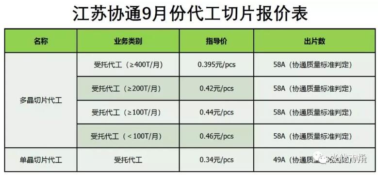 這張圖是江蘇協(xié)通9月份切片的代工價(jià)格,單晶硅片的代工費(fèi)竟然只有驚人的0.34元而且還是含稅價(jià),但凡懂行的人都會(huì)覺(jué)得這個(gè)價(jià)格低到不可思議,在這樣的代工價(jià)格下,選擇外部代工的生產(chǎn)成本甚至自己生產(chǎn),我了解一線巨頭企業(yè)的切片成本都沒(méi)聽(tīng)說(shuō)有低于0.4元的,而現(xiàn)在代工費(fèi)用卻只有0.34元。這樣的價(jià)格下,數(shù)千臺(tái)金剛切改造機(jī)連現(xiàn)金成本都無(wú)法覆蓋。