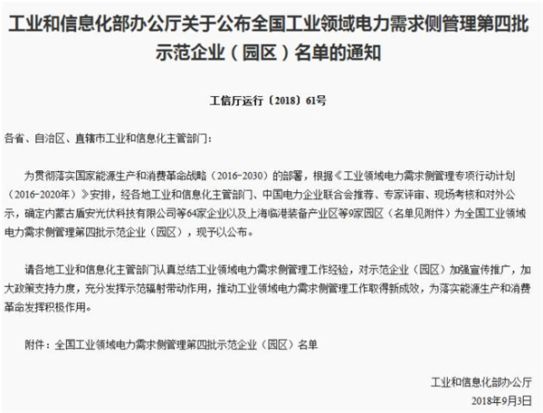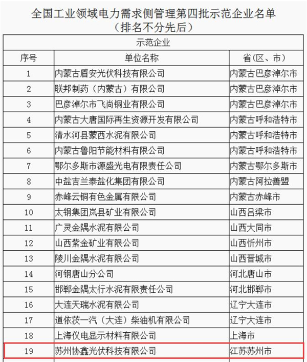 蘇州協(xié)鑫、洛陽中硅在列 工信部公布工業(yè)領域電力需求側管理第四批示范企業(yè)(園區(qū))