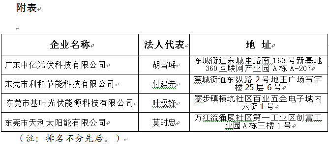 根據(jù)《分布式光伏發(fā)電項(xiàng)目建設(shè)管理暫行辦法》(東發(fā)改〔2017〕770號(hào),下稱(chēng)《管理暫行辦法》)的有關(guān)要求,現(xiàn)向你單位通報(bào)新增符合條件的我市施工企業(yè)名單(詳見(jiàn)附表)。施工企業(yè)名單采取動(dòng)態(tài)管理,我局將根據(jù)企業(yè)誠(chéng)信經(jīng)營(yíng)、施工質(zhì)量等行為及時(shí)更新名單并向你們通報(bào)。