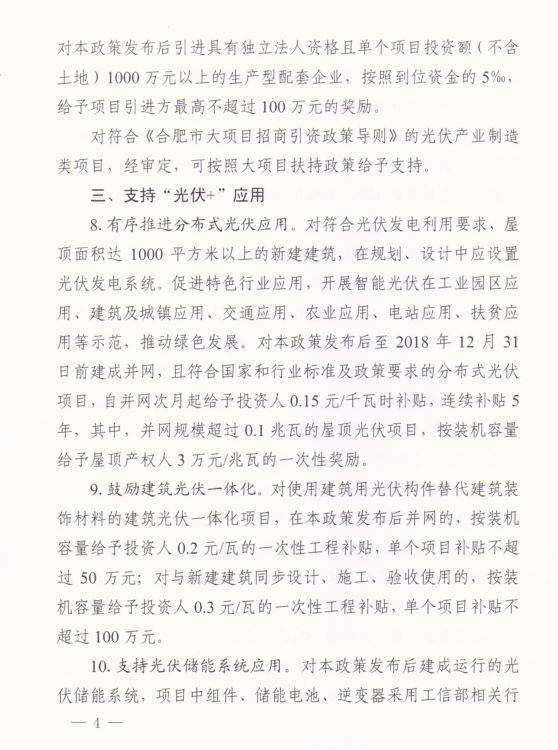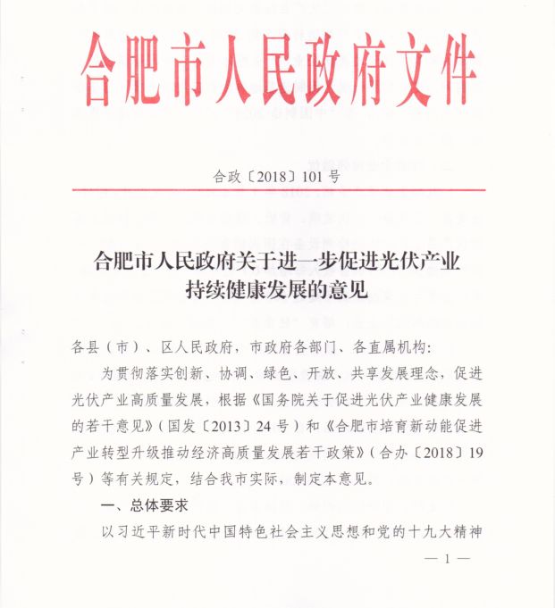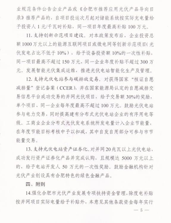 合肥市地方光伏補貼出臺:給予分布式0.15元/kWh,連續(xù)補貼5年