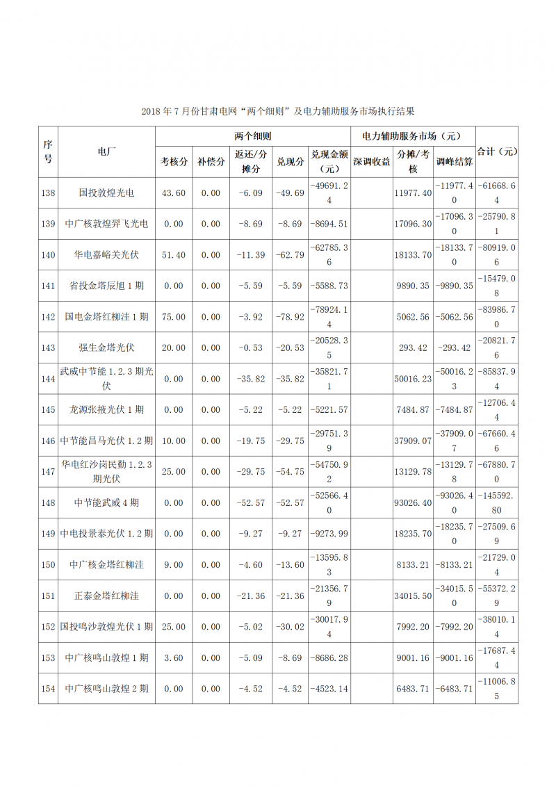 7月甘肅電網(wǎng)“兩個細則”及電力輔助服務(wù)市場執(zhí)行結(jié)果(