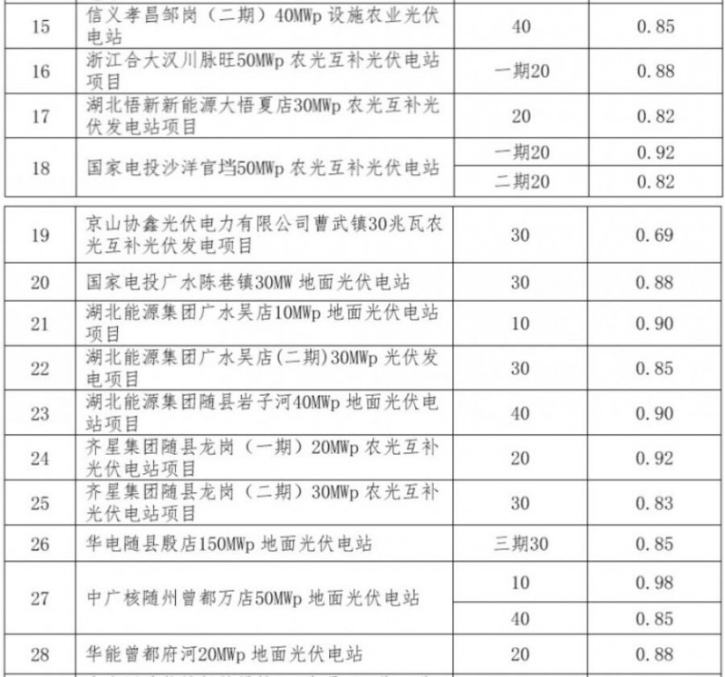 附件:部分光伏發(fā)電項(xiàng)目上網(wǎng)電價(jià)表