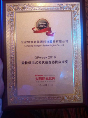 11月17日,“OFweek2016 中國太陽能光伏行業(yè)年度頒獎典禮”在深圳馬可孛羅好日子酒店隆重舉行,寧波錦浪新能源科技股份有限公司在光伏逆變器領(lǐng)域中屢創(chuàng)佳績,榮膺“2016最佳組串式光伏逆變器供應(yīng)商獎”。
