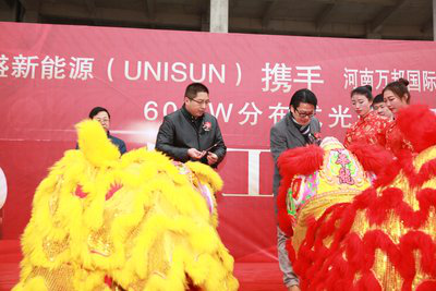 上海和鄭州2016年11月22日電 /美通社/ -- 11月21日,由聯(lián)盛新能源集團(tuán) (UNISUN) 投資的河南萬邦60MW屋頂分布式項(xiàng)目開工典禮在位于鄭州市中牟縣的萬邦國(guó)際農(nóng)產(chǎn)品物流城舉行。