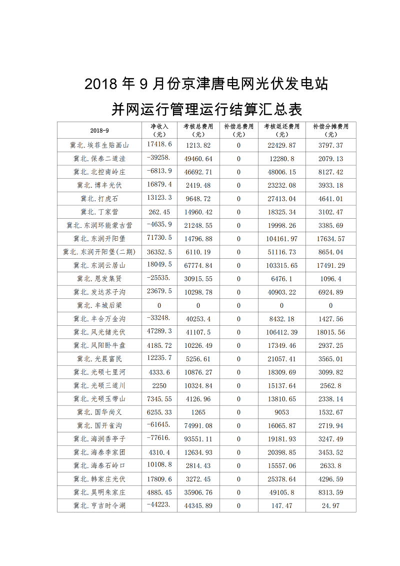 9月京津唐電網(wǎng)光伏電站并網(wǎng)運行管理實施細則運行結(jié)果