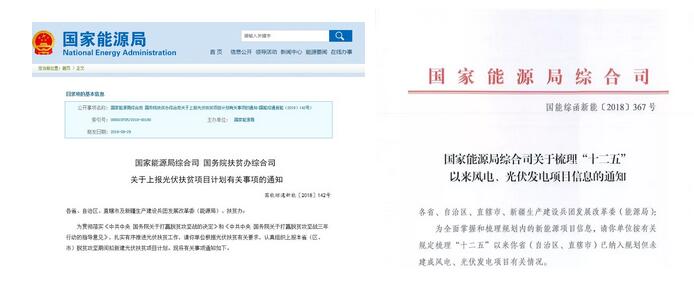隨后,國家能源局于11月7日重發(fā)了《關(guān)于上報光伏扶貧項目計劃有關(guān)事項的通知》和《關(guān)于梳理“十二五”以來風電、光伏發(fā)電項目信息的通知》兩份文件(注:10月10日曾發(fā)過一次),以敦促各省市(區(qū))政府抓緊上報光伏扶貧項目申請信息,對所在地區(qū)存量光伏項目進行“摸底”等,同時也為接下來出臺更多光伏政策預熱。